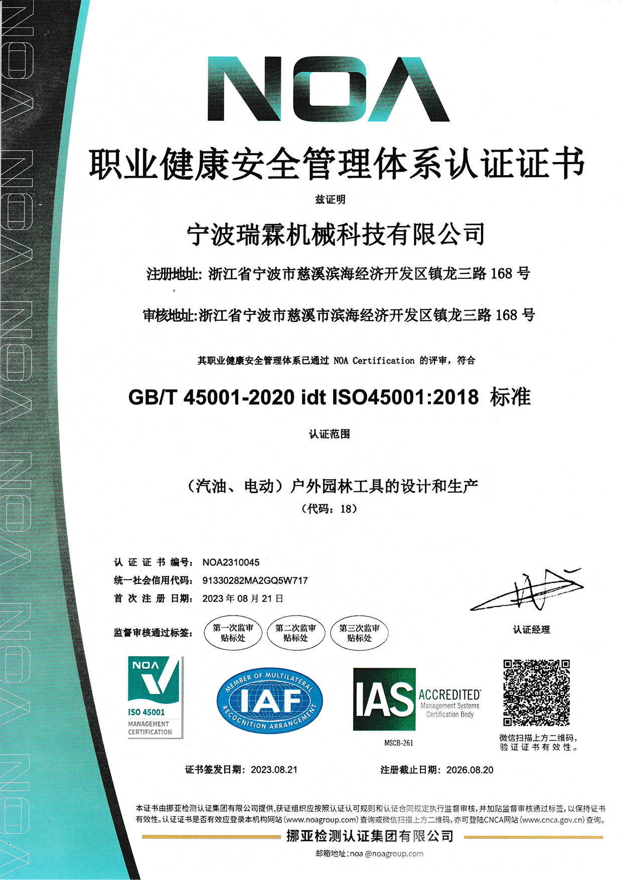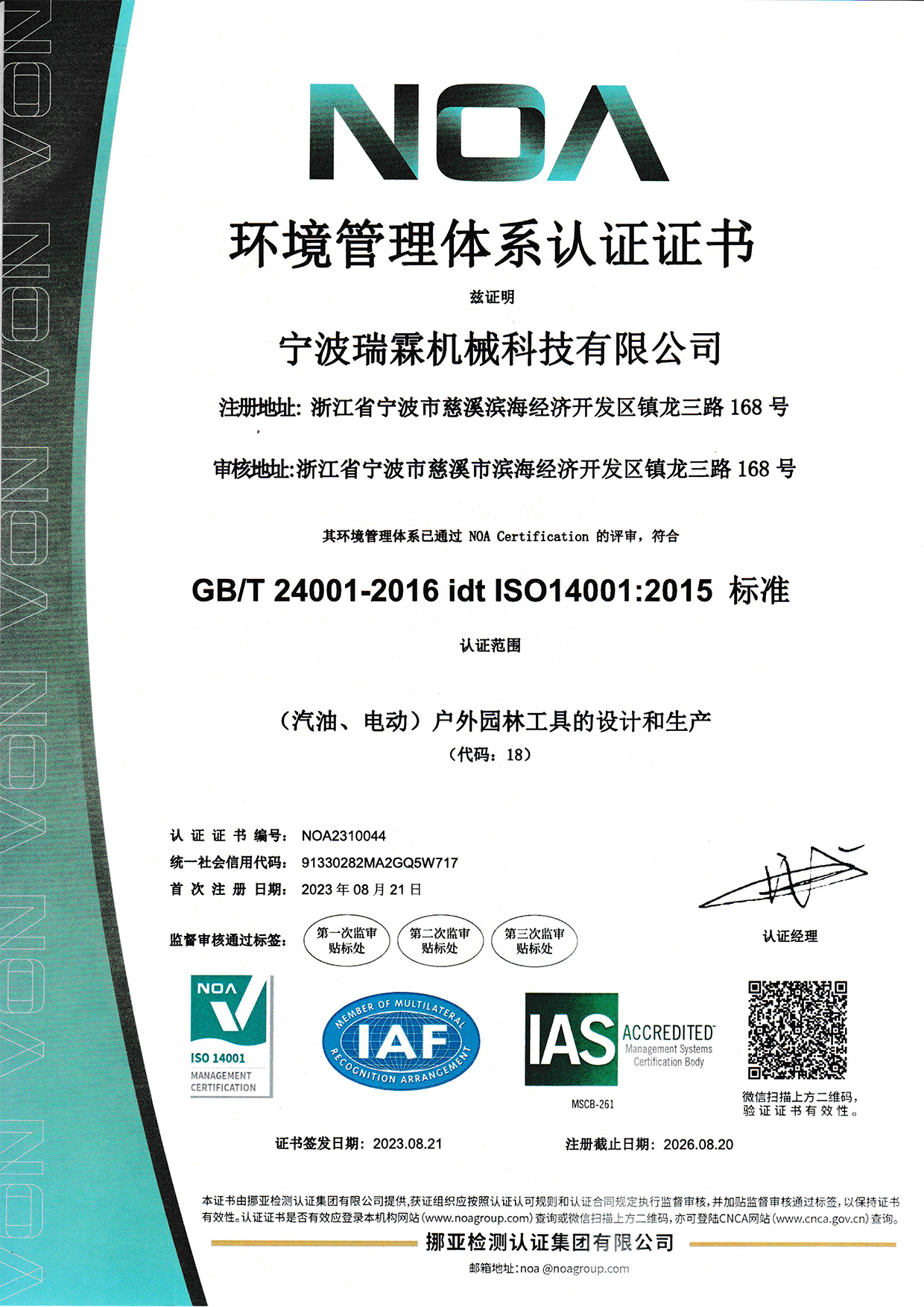 宁波瑞霖机械科技有限公司(简称NGP)是荣耀体育(中国)RONGYAO·官方网页版的全资子公司,成立于2019年4月,位于浙江省慈溪滨海经济开发区镇龙三路168号,占地面积约50000平方米。公司拥有雄厚的技术力量和先进的生产设备,是行业内规模最大的企业之一。NGP集产品设计、开发、生产、销售和服务于一体,主要从事各类汽油、割草机、修枝机、打草机、链锯、吹风机等园林工具的设计研发和制造,产品远销欧洲、美洲、大洋洲等多个国家和地区,同时内销全国各地。作为国家知识产权优势企业,公司注重产品设计,并在此基础上采用先进的精益生产方式,以7S活动规范现场管理,以量身打造的ERP系统整合及有效利用企业资源,以ISO 9001:2015等标准来完善公司质量管理体系,并通过“GS”、“EMC”、“CE”、“UL”等认证来确保产品的安全性和可靠性,已取得各地区出口许可证和自营进出口权。